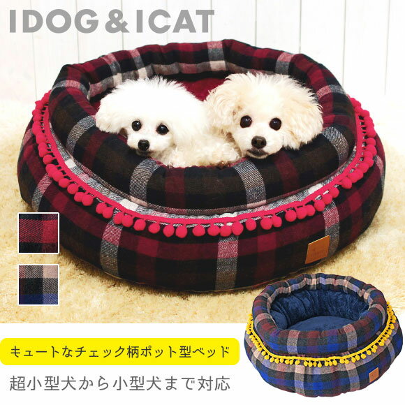 【ベッド最終SALE★63%OFF】【 犬 猫 ベッド 】iDog ポンポン付き ポットベッド チェック アイドッグ【 犬 猫 犬用 猫用 犬用品 猫用品 ベッド カドラー クッション 秋 冬 冬用 秋冬 愛犬 おしゃれ 小型犬 かわいい ペット ペッ】